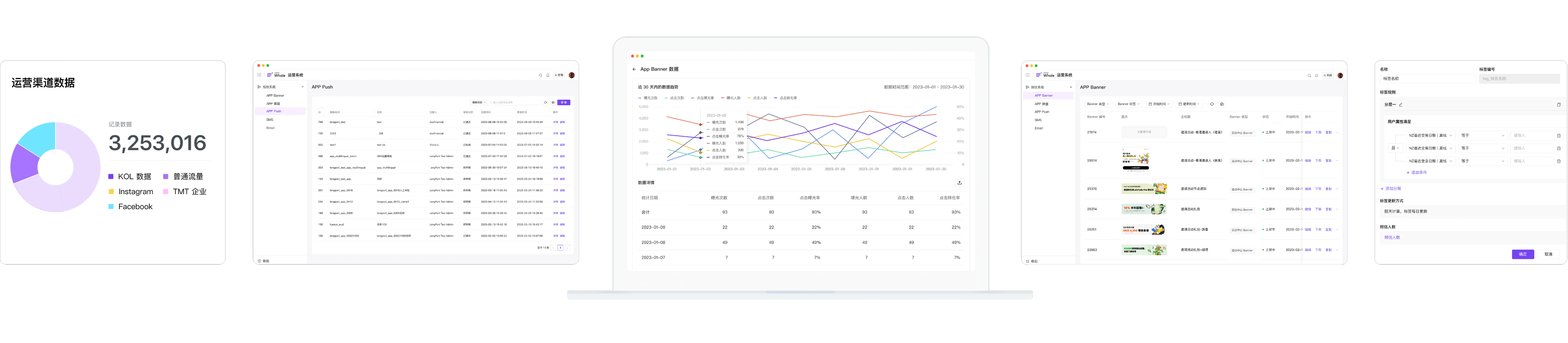 提供集运营策略 → 受众圈选 → 渠道触达 → 数据分析 → 策略优化为一体的闭环运营工具,助力场景化运营